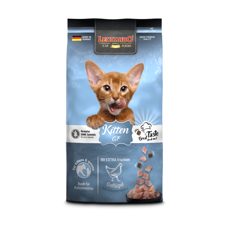Leonardo Kitten GF es un alimento completo para gatitos, elaborado sin cereales y con amaranto como alternativa nutritiva. Su deliciosa combinación de caballa y carne de ave fresca asegura una excelente aceptación.